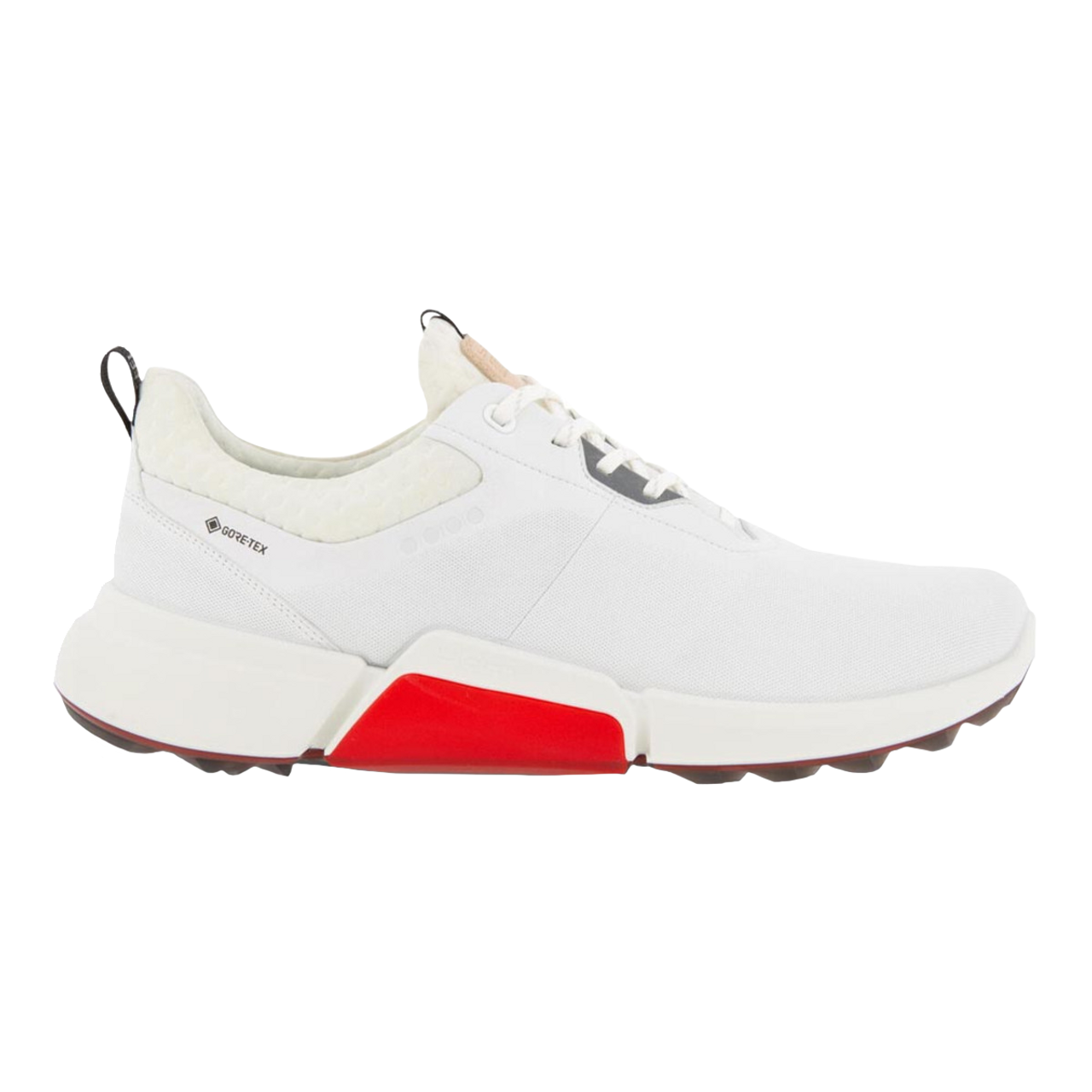 The ECCO Men’s Biom H4 Golf Shoe was created with an elevated appearance and minimalist design to look good and feel great, on or off the course. Made from durable ECCO leather with micro-perforated embossing and GORE-TEX waterproof technology, the Biom H4 Golf Shoes keep your feet dry in any weather conditions. The all-new ECCO MTN GRIP outsole with FLUIDFORM Technology provides additional support and grip through the golf swing.
