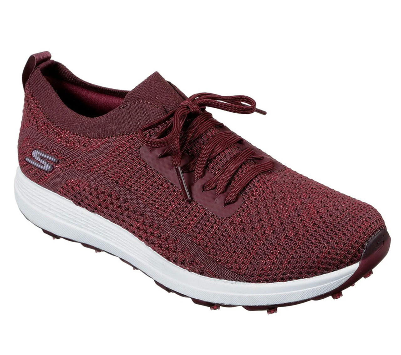 High fashion meets high comfort with the Skechers Go Golf Max Glitter. The breathable mesh upper features a speckled metallic shine that will make you stand out in your foursome. Lightweight and soft cushioning is delivered by the ULTRA FLIGHT and GOGA MAX insole. The spikeless TPU outsole provides durable stability and grip as you walk and swing.