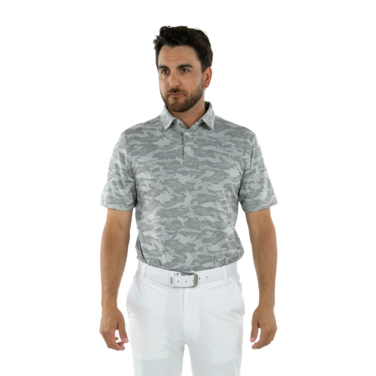 The Valor features a yarn-dyed camo print that creates a unique tonal pattern. Slightly heavier weight than our standard performance jersey fabric. The Straight Down Valor Polo is finished off with odor-controlling, moisture-wicking performance, a self collar and 3-button placket.