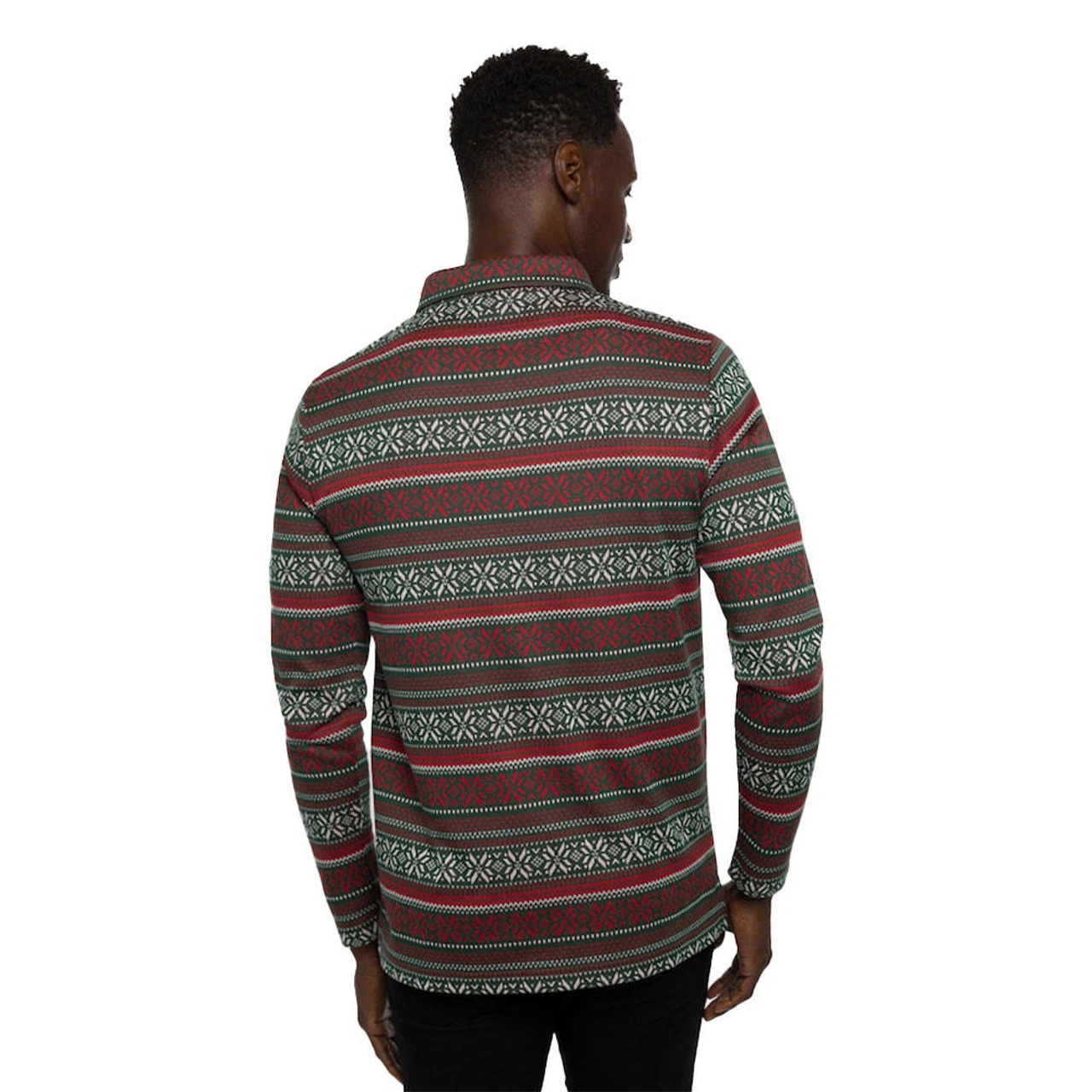 Forget ugly Christmas sweaters. With red, green, and white festive stripes and patterns spanning the design, the PURE GOLD long-sleeve polo is the statement piece you need this holiday season.